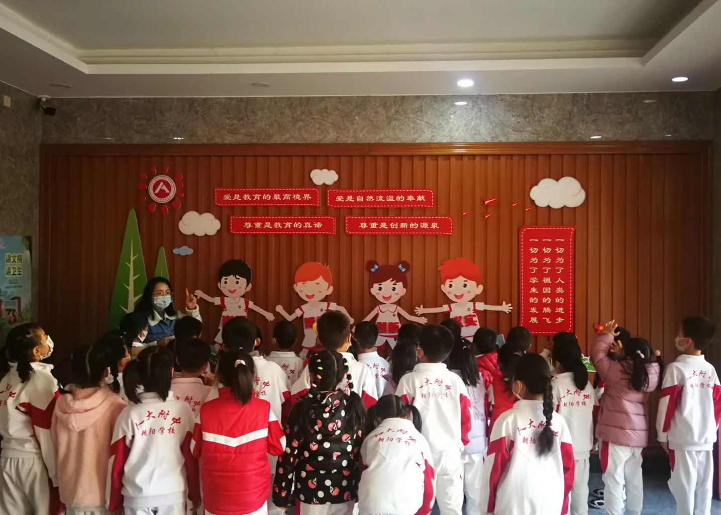 一年级小同学一入学,就在老师的带领下,学习校园文化