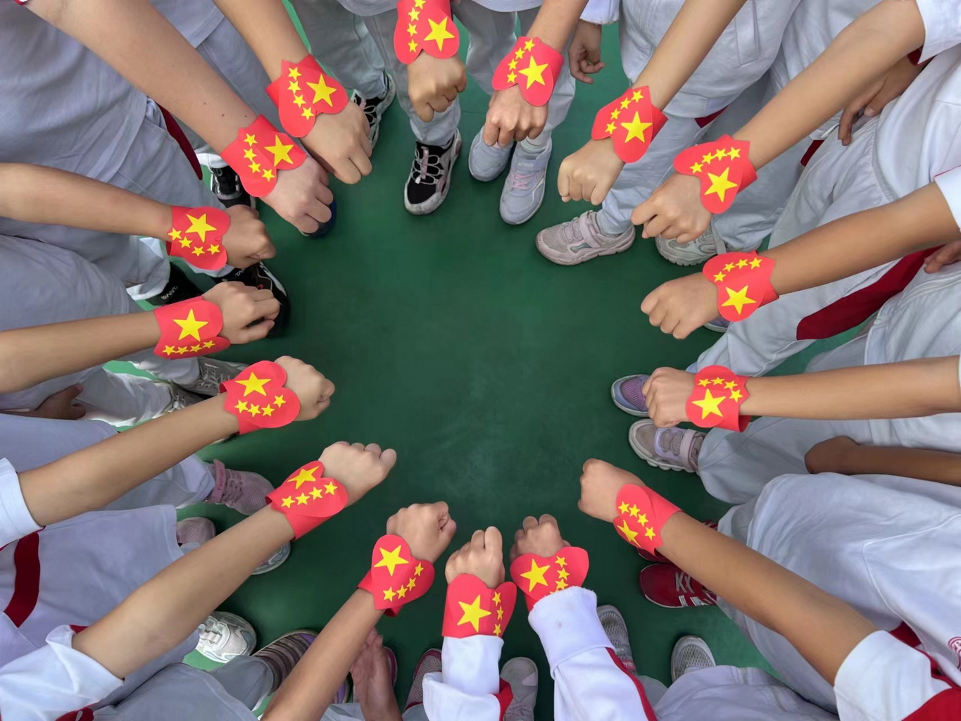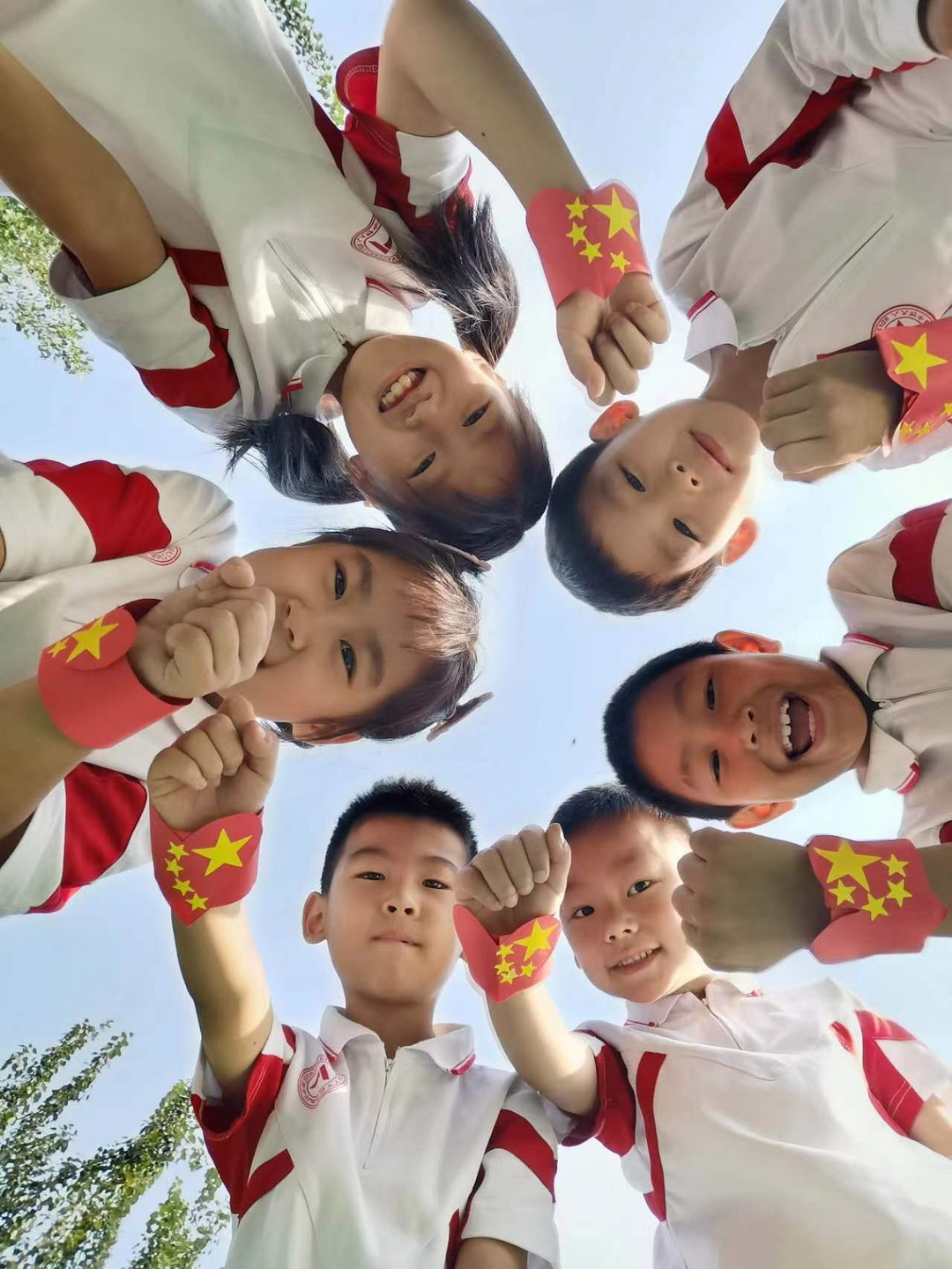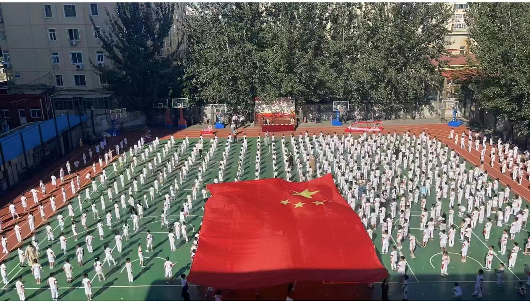 国庆活动中,巨幅国旗让孩子们心潮澎湃
