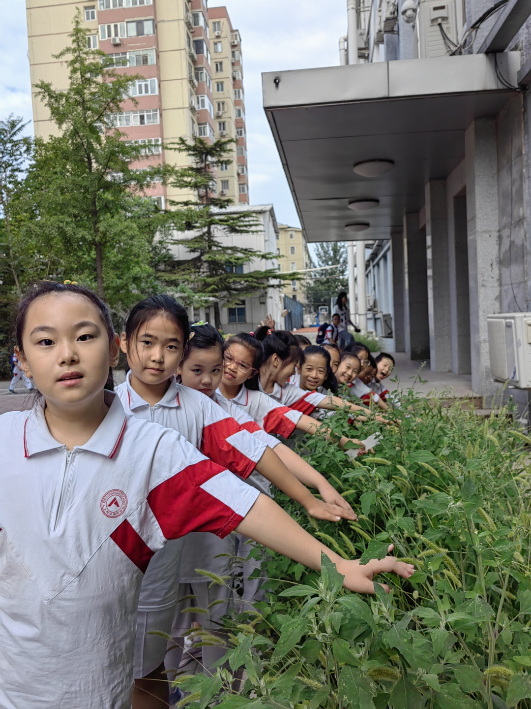 孩子与葱茏的校园一同成长