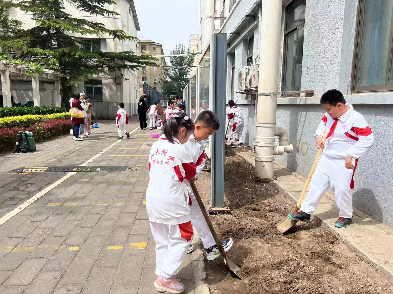 春天,开展师生和家长一同参与的种植活动,我们的校园更加美丽!